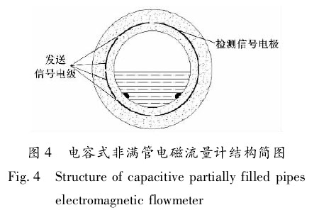 ②電容式非滿管生活污水流量計h。電容式非滿管生活污水流量計結構簡圖如圖4所示。、檢測信號電* 發(fā)送信號電