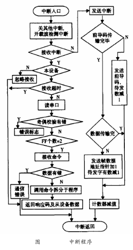 在HART通信中,耐腐蝕污水流量計作為從設(shè)備進行通訊,所以這里的軟件設(shè)計只是針對于從設(shè)備。HART通信采用水平和垂直校驗的方法。當(dāng)檢測到接收數(shù)據(jù)有差錯時,則等到主設(shè)備命令幀發(fā)完后,通知主設(shè)備數(shù)據(jù)接收有誤。主設(shè)備則重新發(fā)命令幀,從而保證通信的準確可靠。HART中斷子程序流程圖如圖6所示。由于HART通信為主從方式,HART幀中每個字節(jié)在物理層傳輸需要9ms左右,為了保證通訊的實時性,通訊程序采用串行口終端接收/發(fā)送。該中斷所要完成通信中的主要任務(wù),即接收和發(fā)送幀,幀的拆分和打包。