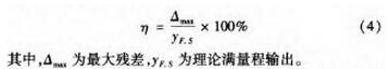 本文采用*小二乘法進(jìn)行線性度評定,即擬合直線為*小二乘直線。*小二乘直線保證了傳感器至*輸出的平均值對它的偏差的平方和為*小,即可以保證擬合直線得到的結(jié)果與實測結(jié)果之間的偏差很小,更具可靠性。根據(jù)定義,線性度即是校準(zhǔn)曲線對這條*小二乘擬合直線的偏離程度。
