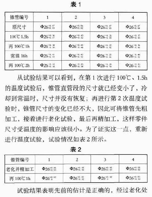 由于錐管老化試驗(yàn)的溫度為100℃,而產(chǎn)品的使用溫度只有70℃,因此按改進(jìn)的工藝加工錐管,必定能滿(mǎn)足產(chǎn)品的設(shè)計(jì)要求。