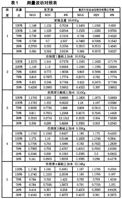 在造紙行業(yè)有大量的紙漿液體需要測量,就會用到大量的流量測量儀表,目前在造紙行業(yè)中用于測量流量的儀表,主要有熱水管道流量計等儀表,因為熱水管道流量計具有非常強的優(yōu)點,所以非常適合在紙漿的流量測量中使用。在紙漿實驗裝置上,使用串聯(lián)在同一管道上該公司生產(chǎn)的漿液型熱水管道流量計與日本東芝的漿液型熱水管道流量計測量不同濃度和流量的紙漿漿液,以驗證其可靠性。波動率對比實驗結(jié)果表明,該產(chǎn)品用于紙漿漿液測量時能夠很好地克服漿液噪聲。在滿流量測量時,上述實驗中各濃度下漿液測量穩(wěn)態(tài)波動率均在1%以內(nèi);其它流量下測量時,由于實驗系統(tǒng)主管道上游分流控制流速不穩(wěn),進而導(dǎo)致測量穩(wěn)態(tài)波動率相對較大,甚至達到近7‰ 但由表1可知,在各種漿液濃度及各流量點下,凱銘儀表有限公司生產(chǎn)的漿液型熱水管道流量計的穩(wěn)態(tài)波動率始終與日本東芝漿液型熱水管道流量計的測量結(jié)果一致,從而表明實驗系統(tǒng)的測量結(jié)果能準確反映實際漿液流量大小。 說明:MAX、MIN分別表示該組數(shù)據(jù)測得流速的的*大值和*小值,單位m/s。