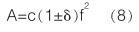 其中 c 為系數(shù), δ 為相對誤差限, 其示意圖如圖 2 所示,圖中實(shí)線為幅頻關(guān)系的理論擬合曲線, 而虛線為幅值波動的閾值曲線。根據(jù)實(shí)驗(yàn)的數(shù)據(jù),渦街信號幅值波動的相對誤差為 ±10% 。