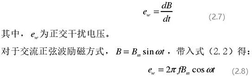 從上圖 2.5 中可以觀察到兩個(gè)電*、勵(lì)磁線圈、轉(zhuǎn)換器內(nèi)阻之間形成了一個(gè)閉合回路,將此回路稱之為初級(jí)繞組,從理論上進(jìn)行分析,磁力線 B 應(yīng)當(dāng)平行于勵(lì)磁線圈所產(chǎn)生的磁感應(yīng)線,但在實(shí)際的應(yīng)用過程中由于工藝差異,因此無法達(dá)到理想狀態(tài),會(huì)產(chǎn)生磁力線穿過勵(lì)磁線圈磁感應(yīng)線的情況,此時(shí)將會(huì)產(chǎn)生相應(yīng)的感應(yīng)電動(dòng)勢,將此部分感應(yīng)電動(dòng)勢稱為變壓器效應(yīng)。此效應(yīng)同樣滿足于楞次定律,利用楞次定律進(jìn)行計(jì)算可得如下電動(dòng)勢: