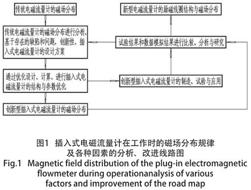 dn80泥漿流量計因其特殊的結(jié)構(gòu)形式,致使其抗干擾能力較弱、準確度偏低以及瞬時流量波動過大等不良現(xiàn)象,但便于安裝、造價低廉、普遍應用于大管道等特點而存在。為了發(fā)揮其優(yōu)勢,消除其不利因素,對其內(nèi)部結(jié)構(gòu)及其相關技術參數(shù)進行優(yōu)化設計,從而使其準確度能夠達到 ±1% FS,使抗干擾能力得到*大地增強。本文主要通過優(yōu)化設計、選擇材料和試驗,使dn80泥漿流量計的穩(wěn)定性和準確度大幅度提高,并提出解決措施,對實際應用具有參考價值。分析與研究程序圖如圖 1 所示。