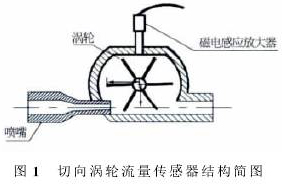 高溫導(dǎo)熱油流量計基本構(gòu)造見圖1。被測流體在流經(jīng)葉輪之前流道會減縮,流速增加,流體經(jīng)過葉輪后葉片旋轉(zhuǎn),磁電傳感器記錄葉片轉(zhuǎn)動頻率,得到被測流體相對應(yīng)的流量。