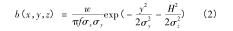 式中: b(x,y,z) = w × e(x,y,z),其中 e(x,y,z) 為二氧化硫濃度與循環(huán)流化床dn150渦街流量計煙氣排放源煙氣強度的比例系數(shù);f 為平均風速,m/s; w 為地面空氣內煙氣排放強度;σ x 為橫向擴散系數(shù)受環(huán)境穩(wěn)定度與下風向距離因素的影響程度。式(3)中描述的是基于時間變化的循環(huán)流化床dn150渦街流量計煙氣排放源煙氣排放強度計算模型。