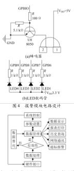 報警模塊由兩大部分組成,分別是蜂鳴器和LED 數(shù)碼管 。報警模塊采用 LR043JC211 液晶屏作為 LCD 顯示屏,其面板大小、分辨率和掃描頻率分別為4.2 英寸、480 ×242 ppi 和 60 Hz。數(shù)據(jù)接收處理模塊中設(shè)有液晶驅(qū)動寄存器,驅(qū)動接口與 LCD信號接口一一對應(yīng)連接,而數(shù)據(jù)接口則與 3 個 LCD液晶數(shù)據(jù)接口相連。圖4 為報警模塊電路設(shè)計圖。