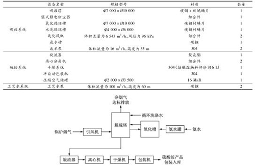 工藝系統(tǒng)主要包括煙氣系統(tǒng)、SO 2 吸收系統(tǒng)、吸收劑供給系統(tǒng)、氧化空氣系統(tǒng)、硫酸銨后處理系統(tǒng)、工藝水系統(tǒng)、檢修排空系統(tǒng)、硫酸銨儲(chǔ)存系統(tǒng)(見表 4)。