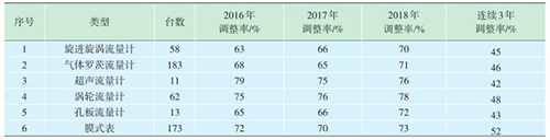 在2017年的工作基礎(chǔ)上,對2018年送檢的氣體流量計進(jìn)行了抽查,并按不同類型進(jìn)行了統(tǒng)計(表2)。