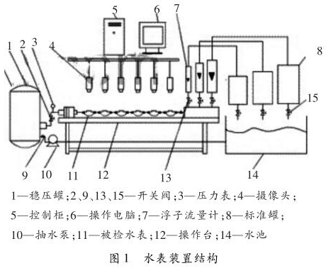 水表檢定裝置是全自動(dòng)水表校驗(yàn)裝置,水表檢定裝置以計(jì)算機(jī)為核心,它在需要檢定水表上方安裝攝像裝置,連接到圖像采集和高速計(jì)算器中,計(jì)算器可以識(shí)別水表指針的流量數(shù)值,自動(dòng)控制水流量,實(shí)現(xiàn)水表檢驗(yàn)的全自動(dòng)化,針對水表檢定裝置存在的問題提出解決方案,減少水表檢定裝置在使用過程中出現(xiàn)質(zhì)量問題,讓水表檢定裝置可以不斷完善。