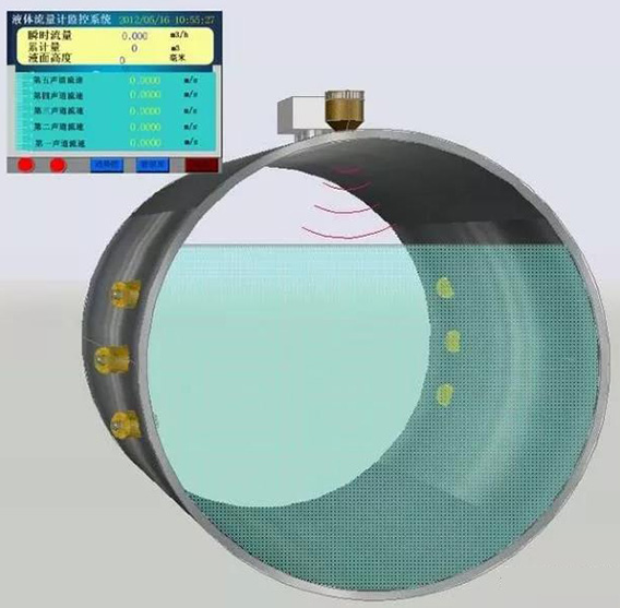 超聲波流量計(jì)的工作原理是,借助時(shí)差式測量原理,通過一對(duì)超聲波探頭發(fā)射信號(hào)穿過中間介質(zhì)到達(dá)另一側(cè)管壁,被另一個(gè)探頭接收到,另一側(cè)探頭同樣發(fā)射信號(hào)被*一個(gè)探頭接收到。在這個(gè)過程中,由于信號(hào)的輸送時(shí)間受介質(zhì)流速的影響,所以,存在一定的時(shí)間差?;诖?,超聲波流量計(jì)借助相關(guān)公式計(jì)算出了相應(yīng)的流量值。