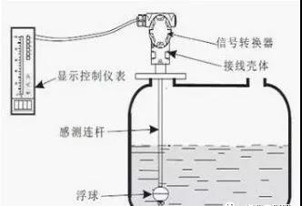 原理: 浮球液位計結(jié)構(gòu)主要基于浮力和靜磁場原理設(shè)計生產(chǎn)的。帶有磁體的浮球(簡稱浮球)在被測介質(zhì)中的位置受浮力作用影響:液位的變化導(dǎo)致磁性浮子位置的變化。浮球中的磁體和傳感器(磁簧開關(guān))作用,使串連入電路的元件(如定值電阻)的數(shù)量發(fā)生變化,進(jìn)而使儀表電路系統(tǒng)的電學(xué)量發(fā)生改變。也就是使磁性浮子位置的變化引起電學(xué)量的變化。通過檢測電學(xué)量的變化來反映容器內(nèi)液位的情況。