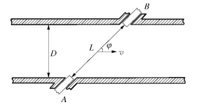 制藥廠污水流量計(jì)為獨(dú)立測量設(shè)備,由多個位于管線內(nèi)壁的超聲傳感器組成。傳感器由緊固機(jī)械裝置插入管道中,超聲脈沖被 2 個傳感器交替地發(fā)射和接收。由于電磁在逆流和順流情況下的傳輸時間 tu 和 t d 不同,通過時差法可以計(jì)算得到流體流速,工作原理如圖 1 所示。制藥廠污水流量計(jì)還可以配置成雙向計(jì)量模式,精度不變。