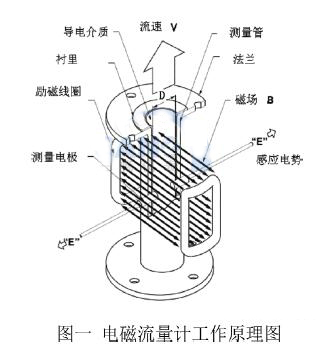 電磁流量計(jì)的測(cè)量原理是基于法拉*電磁感應(yīng)定律:即導(dǎo)體介質(zhì)在磁場(chǎng)介質(zhì)中切割磁力線運(yùn)動(dòng)時(shí)在其兩端產(chǎn)生感應(yīng)電動(dòng)勢(shì)。如圖1所示,導(dǎo)電介質(zhì)在垂直于磁場(chǎng)的非磁性測(cè)量管內(nèi)流動(dòng),與流動(dòng)方向垂直的方向上產(chǎn)生與流量成比例的感應(yīng)電勢(shì),電動(dòng)勢(shì)的方向按“弗來(lái)明右手規(guī)則”,其感應(yīng)電勢(shì)E為:E=KBVD式中:E---感應(yīng)電動(dòng)勢(shì)(與流速成正比);K---比例常數(shù);B---磁場(chǎng)強(qiáng)度(線圈電感);V---測(cè)量管內(nèi)介質(zhì)的平均流速;D---電*間距(測(cè)量管的內(nèi)徑)