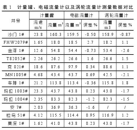 表中 12 口固井進行泥漿流量計測量應(yīng)用結(jié)果可以看出,儀表計量誤差小于 1%,且在流速 2.0 m/s以下,測試的流量越少其可能帶來的誤差影響就越高。當(dāng)測試流量處在 1.0 m/s 上下時,計量精度已經(jīng)降到了 3%。由此可以判斷,不同固井泥漿流量計的使用誤差是由于零點漂移引起的,這就與室內(nèi)試驗的清水標(biāo)定結(jié)果相一致。而 DN50 測量管的使用,則應(yīng)采用雙頻矩形波作為實際作用的勵磁信號。這樣一來,就能有效避免或防止固井泥漿的流動噪聲或是作業(yè)現(xiàn)場的機械振動問題,對計量泥漿流量的精度早晨影響。