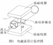 如圖1所示,某一時(shí)刻由一對(duì)勵(lì)某一時(shí)刻由一對(duì)勵(lì)磁線圈產(chǎn)生的磁感磁線圈產(chǎn)生的磁感應(yīng)強(qiáng)度B,方向向上,流入液體的速上,流入液體的速度為v,管的直徑管為D,兩*的距離為L(zhǎng)e,兩*間電動(dòng)勢(shì),兩*間電動(dòng)勢(shì)ε正比于磁感應(yīng)強(qiáng)度正比于磁感應(yīng)強(qiáng)度B、流速v和兩*間的距離Le,即: