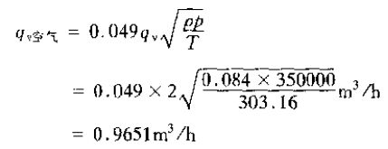 也可以用式(5-19)來換算氣體的流量范圍,Kp、Kp和Kt分別為表5-2~表5-4中的值,qv空氣和qv的意義同上。