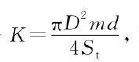 m---漩渦發(fā)生體兩側(cè)弓形面積與管道橫截面面積之比,其值為