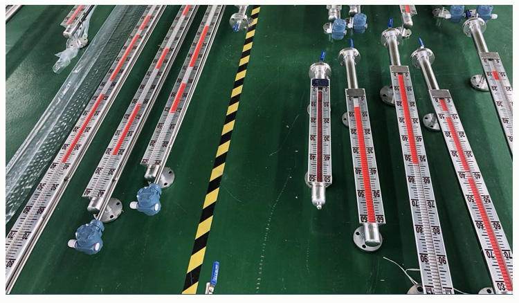 磁翻板液位計是以浮球組件為測量元件,通過液體浮力作用,使浮球上下移動,帶動頂桿上端的磁鋼上下變化,經(jīng)磁性耦合作用,使顯示器組件的磁性翻柱翻轉(zhuǎn)達(dá)到跟蹤液體液位變化,故顯示醒目,讀數(shù)直觀,因顯示器組件與被測介質(zhì)完全隔離,故使用安全可靠。該液位計適用于各種地下槽、池等容器,以及不適宜側(cè)面開孔的容器的液位顯示,如配上配套儀表可用于遠(yuǎn)傳檢測,以實現(xiàn)自動控制功能。
