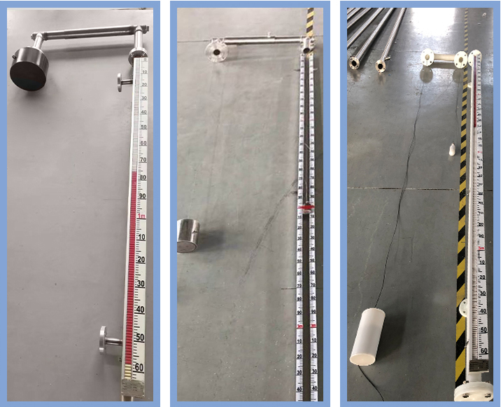 在儀表安裝時,罐內應還未有被測介質,浮標在罐內的底部時,重錘指針部分的紅色尖頭指示應指在標尺測量范圍的頂部“零”值上,否則要調整鋼絲長度。