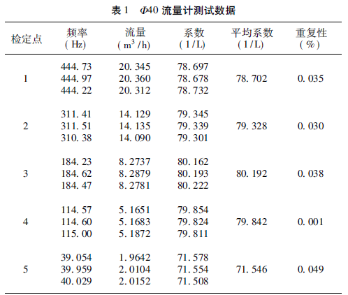 儀表線性: 5. 7%。依據(jù)表2 測(cè)試數(shù)據(jù),經(jīng)計(jì)算可得,Φ25 流量計(jì)測(cè)試結(jié)果如下: