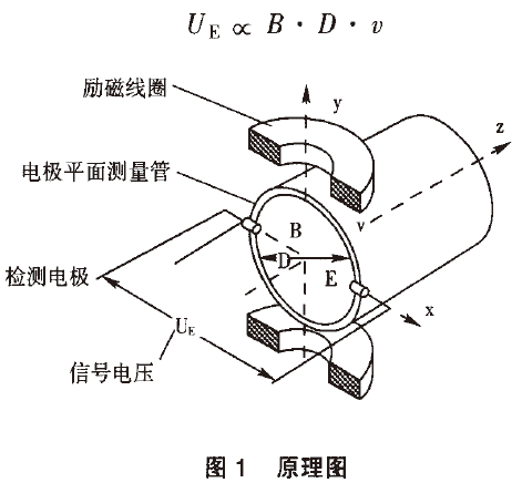 高精度污水管道流量計的基本原理是以法拉*電磁感應(yīng)定律為基礎(chǔ),即導(dǎo)體在磁場中作切割磁力線運(yùn)動時,在其兩端產(chǎn)生感應(yīng)電動勢。該原理用于測量管道內(nèi)流動的導(dǎo)電性流體。導(dǎo)電性液體在垂直于磁場的非磁性測量管道內(nèi)流動,并且流體流動的方向與磁場方向相垂直(見圖1),