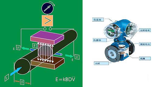 由上式可見,體積流量qv與感應(yīng)電動(dòng)勢(shì)e和測(cè)量管內(nèi)徑D成線性關(guān)系,與磁場(chǎng)的磁感應(yīng)強(qiáng)度B成反比,與其它物理參數(shù)無(wú)關(guān).這就是智能印染污水流量計(jì)的測(cè)量原理.