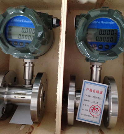 渦輪流量計(jì)是由渦輪、軸承、前置放大器、顯示儀表組成。被測流體沖擊渦輪葉片,使渦輪旋轉(zhuǎn),渦輪的轉(zhuǎn)速隨流量的變化而變化,即流量大,渦輪的轉(zhuǎn)速也大,再經(jīng)磁電轉(zhuǎn)換裝置把渦輪的轉(zhuǎn)速轉(zhuǎn)換為相應(yīng)頻率的電脈沖,經(jīng)前置放大器放大后,送入顯示儀表進(jìn)行計(jì)數(shù)和顯示,根據(jù)單位時(shí)間內(nèi)的脈沖數(shù)和累計(jì)脈沖數(shù)即可求出瞬時(shí)流量和累積流量。