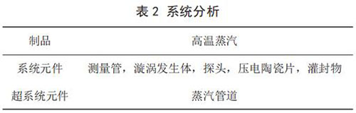 1)定義技術系統(tǒng)實現的功能。問題所在技術系統(tǒng)為二氧化硫流量計傳感器系統(tǒng);該技術系統(tǒng)的功能為轉換信號;實現該功能的約束:測量精度為 ±1%,成本提高控制在 20% 之內。