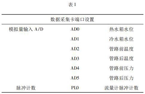 數(shù)據(jù)采集系統(tǒng)由工控機(jī)、化工污水流量計(jì)以及數(shù)據(jù)采集卡組成。 4000 次冷熱沖擊試驗(yàn)要求在在*大流量 qs 條件下運(yùn)行,對(duì)流量數(shù)據(jù)的采集用到化工污水流量計(jì)及數(shù)據(jù)采集卡。化工污水流量計(jì)采集管路流量,數(shù)據(jù)采集卡將化工污水流量計(jì)采集到的數(shù)據(jù)反饋給工控機(jī)系統(tǒng)。過程中,試驗(yàn)管路水溫以及水箱水位的采集控制也是通過數(shù)據(jù)采集卡反饋給系統(tǒng)控制。試驗(yàn)過程用到的數(shù)據(jù)采集卡采用研華生產(chǎn)的PCI - 1711。PCI - 1711 是一款多功能 PCI 總線數(shù)據(jù)采集卡,具有 16 路單端模擬量輸入功能、2 路 12位模擬量輸出功能、16 路數(shù)字輸入和 16 路數(shù)字輸出功能、計(jì)數(shù)器功能等。為保證冷熱沖擊試驗(yàn)結(jié)果的準(zhǔn)確性,嚴(yán)要求嚴(yán)格控制管路流量以及管路壓力。因此,管路設(shè)置前后管路溫度、冷熱水箱水位以及管路壓力的采集,管路流量根據(jù)化工污水流量計(jì)脈沖計(jì)數(shù)進(jìn)行采集,其數(shù)據(jù)采集卡端口設(shè)置如表 1 所示。