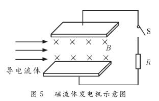 【例1】圖5為磁流體發(fā)電機示意圖。設(shè)兩金屬板間的距離為d,兩*板間勻強磁場的磁感應(yīng)強度為B。等離子體垂直進入磁場的速度為v,單個離子所帶的電荷量為q。離子通道(即兩*板內(nèi)所圍成的空間)的等效電阻為r,負載電阻為R。則下列判斷正確的是( ?。?br /> A。該發(fā)電機的電動勢E=Bdv