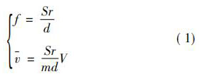 式中: 珋v 為旋渦發(fā)生體兩側(cè)平均流速,m / s; d 為旋渦發(fā)生體特征寬度,m; Sr 為斯特勞哈爾常數(shù),無(wú)量綱常數(shù); V 為管道流體平均流速,m / s; m 為旋渦發(fā)生體兩側(cè)弓形面積與管道截面積之比。 如,對(duì)于寬度為 d 的三角柱,有: