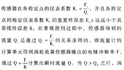 對于重復(fù)性很好而線性度較差的渦輪流量傳感器,要擴(kuò)大其測量范圍或減小測量誤差,研究的核心問題是設(shè)計一-種便捷的使用方法,按照行鑒定規(guī)程利用原有檢定數(shù)據(jù),使渦輪流量傳感器在具有很小重復(fù)性誤差的流量范圍內(nèi),都能得到很準(zhǔn)確測量效果。