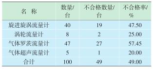 在2017年的工作基礎上,對2018年送檢的氣體流量計進行了抽查,并按不同類型進行了統(tǒng)計(表2)。