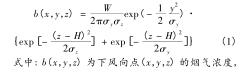 在循環(huán)流化床dn150渦街流量計煙氣脫硫排放效果監(jiān)測系統(tǒng)中,采用適于連續(xù)點源擴散研究的高斯煙羽模型 。此模型忽略重力影響,將風力情況設定為水平風,不存在垂直地面風。在保證較長時間內風向、風速、大氣穩(wěn)定度等環(huán)境因素均處于穩(wěn)定狀態(tài)的基礎上,構建高斯煙羽模型,可仿真循環(huán)流化床dn150渦街流量計排放煙氣中二氧化硫沿下風向擴散的濃度分布,該模型滿足: