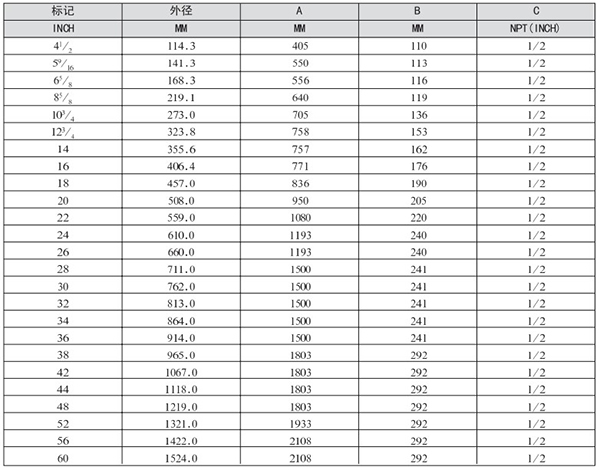 2.尺寸表中同一欄值有兩個(gè)并以/隔開(kāi),表示/下方的數(shù)值是以HG管法蘭尺寸計(jì)算所得。