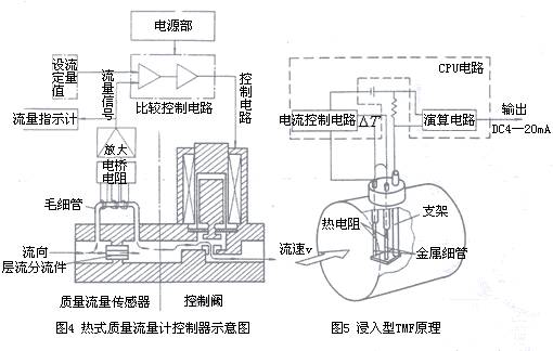 市場上熱分布式tmf按測量管內(nèi)徑分為細管型(也有稱毛細管型)和小型兩大類,結(jié)構(gòu)上有較大區(qū)別。小型測量管儀表只有直管型,內(nèi)徑為4mm;細管型測量管內(nèi)徑僅0.2~0.5mm。稍大者為0.8~1mm,*容易堵塞,只適用于凈化無塵氣體。細管型儀表還有一種帶有調(diào)節(jié)單元和控制閥等組成一體的熱式質(zhì)量流量控制器,結(jié)構(gòu)如圖4所示。