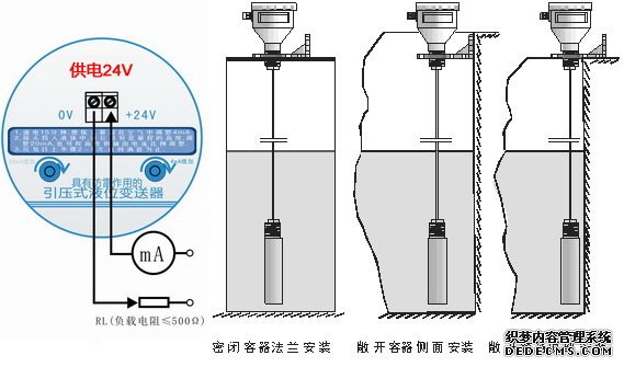 在流動液位中安裝方法:在流動的液體中測量液位時,因介質(zhì)波動較大,可以在液體中插入一根Φ45mm的鋼管,同時在水流方向的反面不同高度的管壁上打若干小孔,使液體流入管內(nèi)。另一種方法是在液體底部加裝阻尼裝置,以過濾泥沙和消除動態(tài)壓力和波浪對單法蘭靜壓液位計安裝測量的影響。