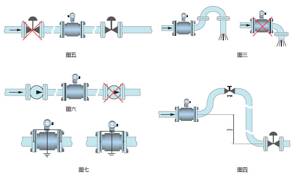 LDE電磁流量計(jì)對(duì)安裝點(diǎn)的上、下游工藝管有一定的要求,否則影響測(cè)量精度。