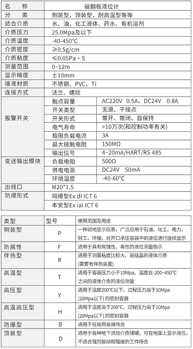 計(jì)為Flap-11系列浮子液位計(jì)選型表