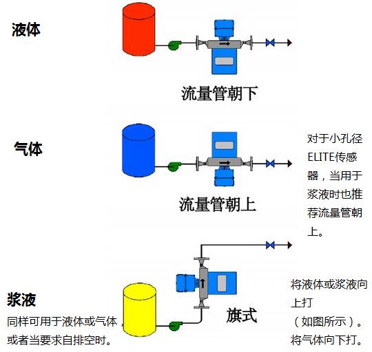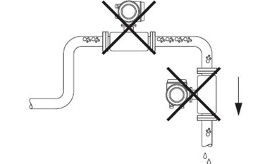 流量計(jì)安裝在末端排空向下的方式,如下圖(液體方式,氣體與之相反)