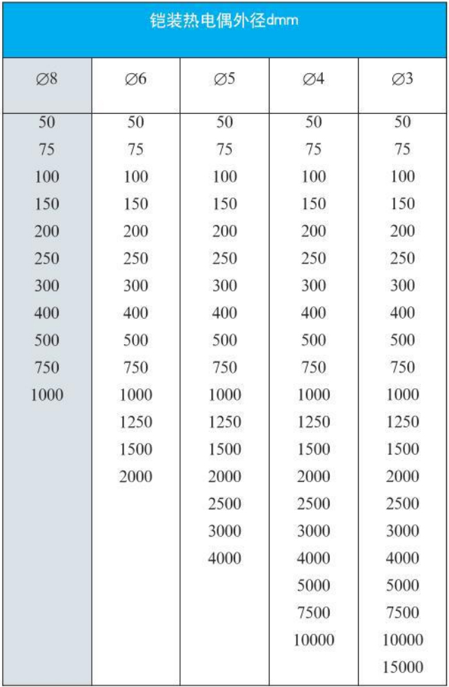 ③直徑φ2mm鎧裝熱電偶須和本公司協(xié)商訂貨。